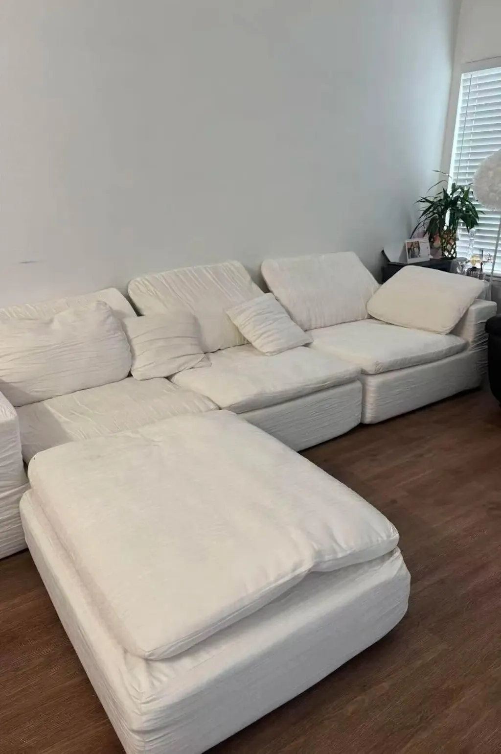 121" L-Shaped Modular Sectional Sofa with Ottoman, No Assembly Required, Chenille Warm White | Breathable Material